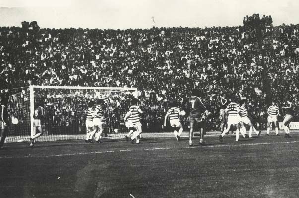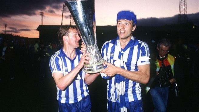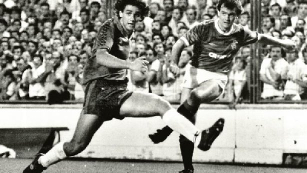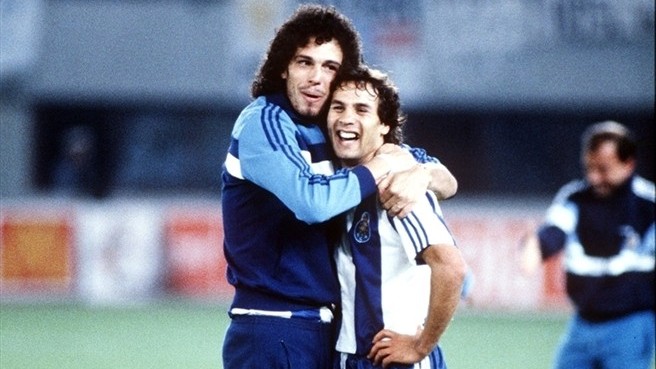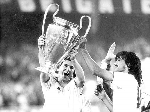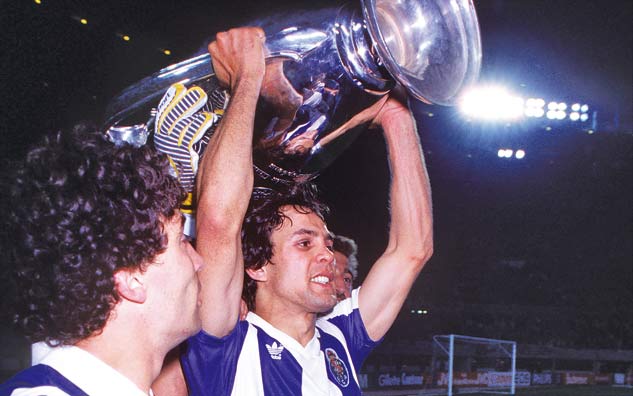 Football, European Cup Final, Vienna, Austria, 27th May 1987, Porto 2 v Bayern Munich 1, Porto's Raber Madjer holds the trophy aloft